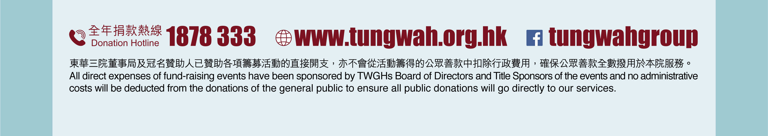 查詢及建議:東華三院企業傳訊科 傳真:(852) 2975 9521 或 電郵 enquiry@tungwah.org.hk